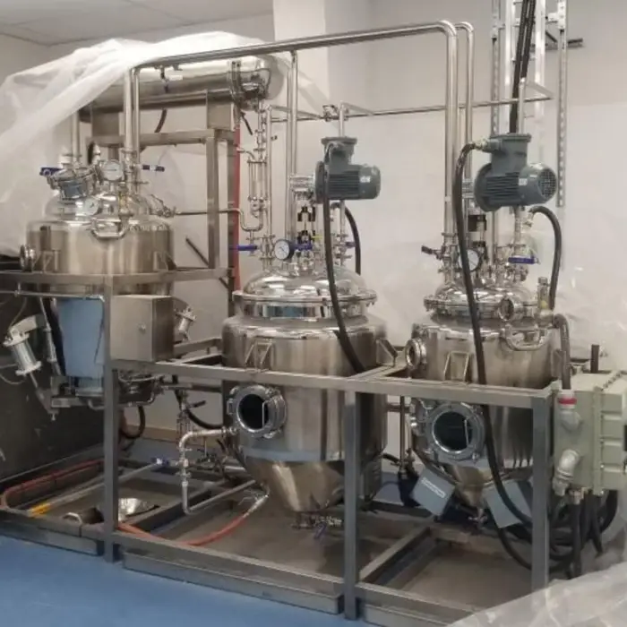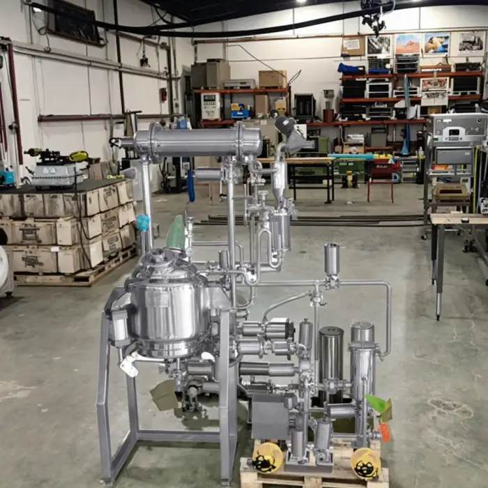 The equipment includes safety features such as pressure relief valves and temperature controls to ensure safe operation during the extraction process.