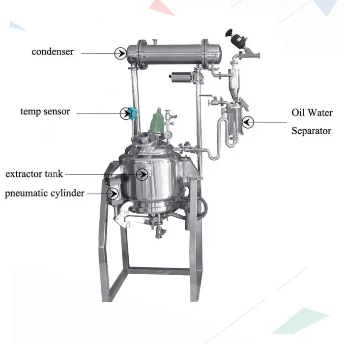 This equipment is suitable for extracting essential oils from various botanical plants, including ginger stems and other herbal materials.