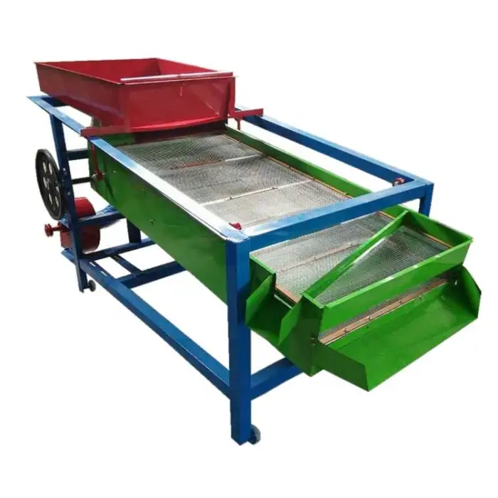 This machine is designed to clean and separate various grains including wheat, rice, corn, soybeans, and beans, as well as grapes and alfalfa.