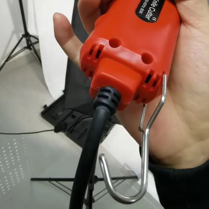 The Small OEM MOQ Air Cooled DIY Grooving Cutting Electric Heated Knife uses a fast wire contour cutting mechanism for precise and clean cuts.