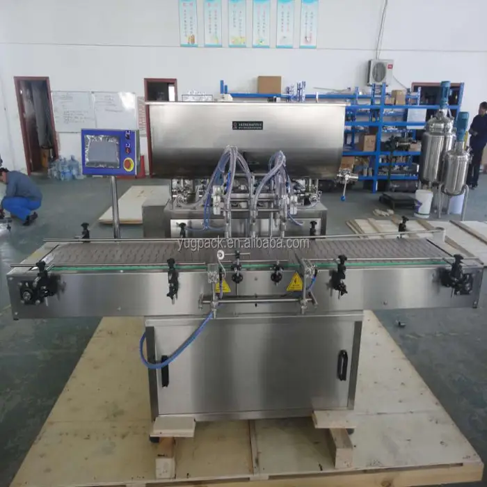 The filling machine can handle a variety of liquids and pastes, including ketchup, tomato sauce, oyster sauce, mayonnaise, ice cream, juice, milk, and other food products, as well as chemicals and liquid commodities.
