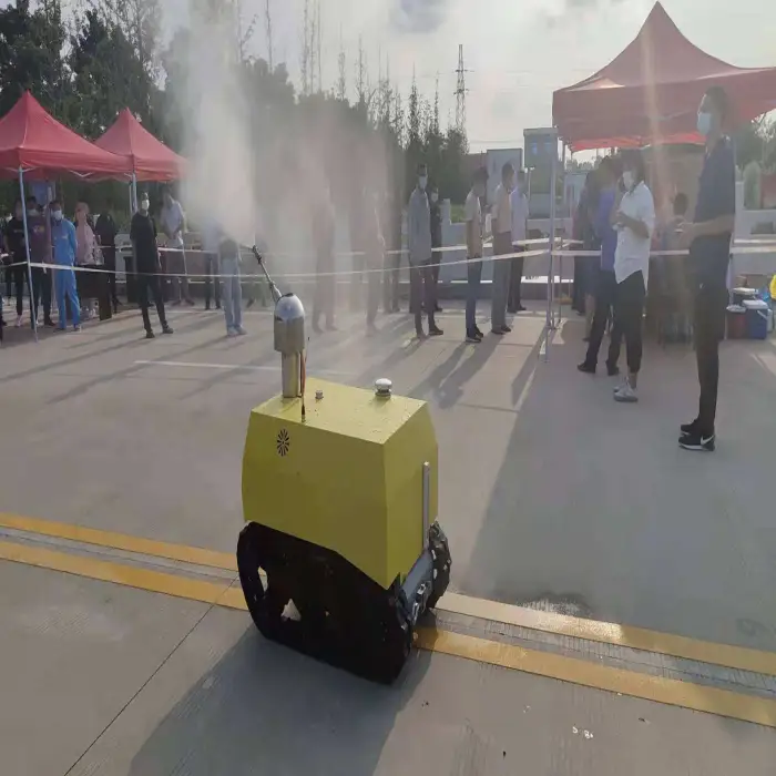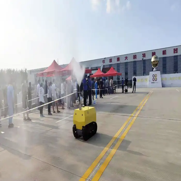 The robot has an adjustable spray volume ranging from 3 to 5 liters per minute, enabling customization based on specific disinfection needs.