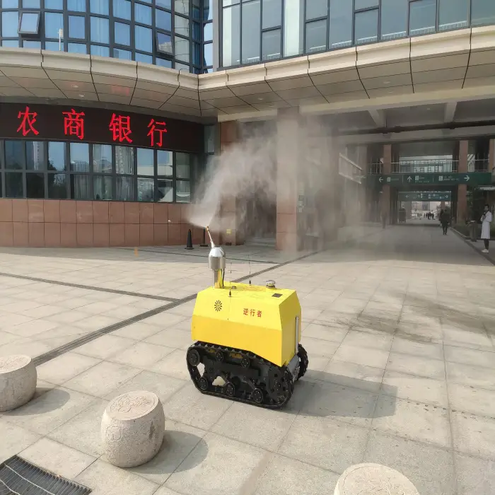 The robot combines UV technology with efficient spray mechanisms to ensure thorough coverage and effective disinfection of surfaces.