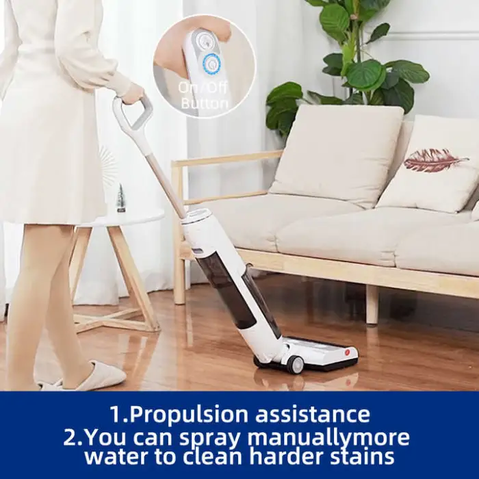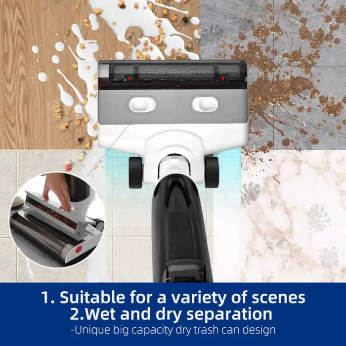 The vacuum cleaner boasts a wet and dry suction power of over 200 Airwatts, providing powerful cleaning performance for various messes.