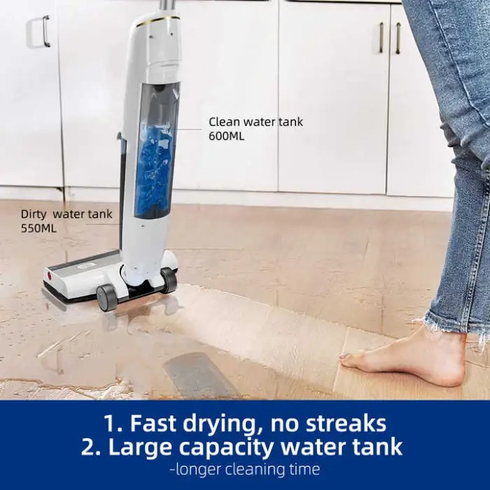 The clean water tank has a capacity of 650 ml, while the dirty water tank can hold up to 600 ml.