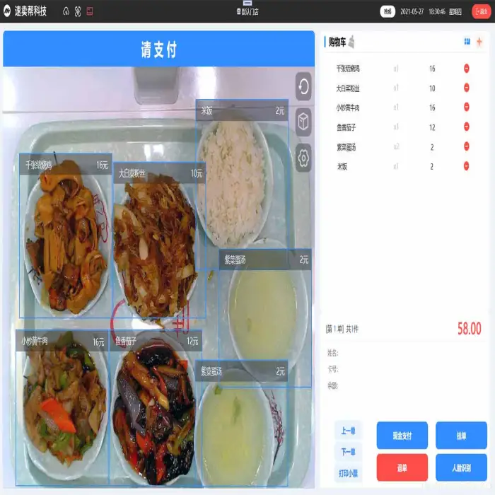 The AI dish recognition technology quickly identifies dishes placed in front of the camera, allowing for a fast and efficient checkout process.