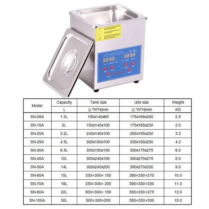 The SN-80A is designed for use in various industries including manufacturing, food processing, restaurants, and jewelry cleaning.