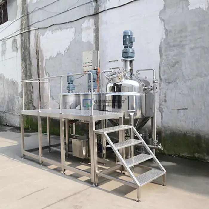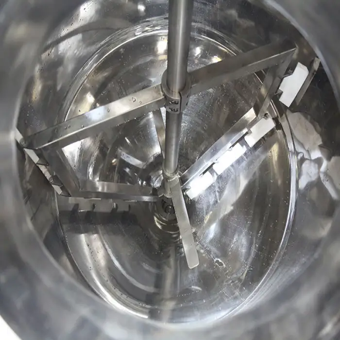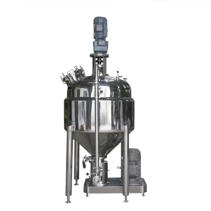 This mixing tank can be used for making soaps, producing shower gels, mixing chemicals, creating cosmetic products, and even formulating food products.