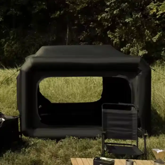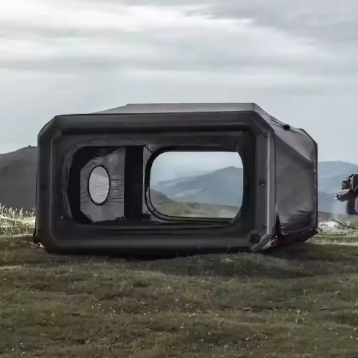 The tent features an automatic opening design, allowing for quick and easy setup. Simply unpack it, inflate it, and it will pop up in minutes.