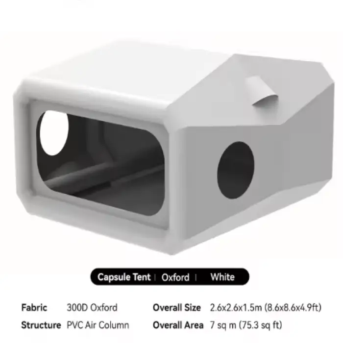 The Space Capsule Inflatable Tent is available in black and white color options.
