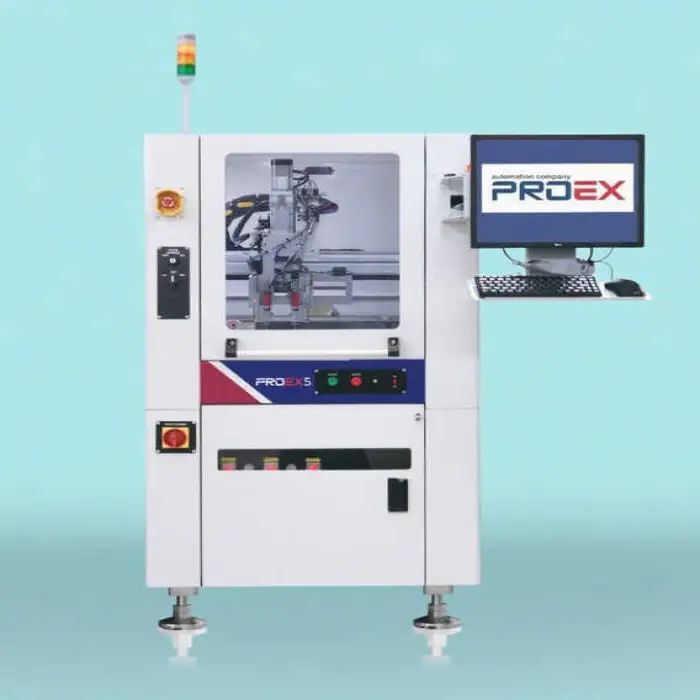 The PROEX5 is ideal for PCB assembly in electronics manufacturing, applying conformal coatings, and can be used in both large and small production runs.