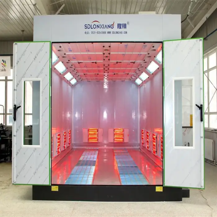 The spray booth is ideal for auto body shops performing repairs, professional car painting services, restoration of classic vehicles, and commercial vehicle maintenance.