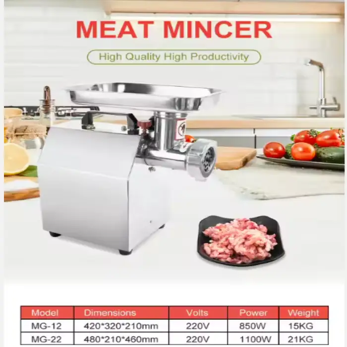 The meat chopper machine is made of high-quality stainless steel, which provides durability and ease of cleaning.