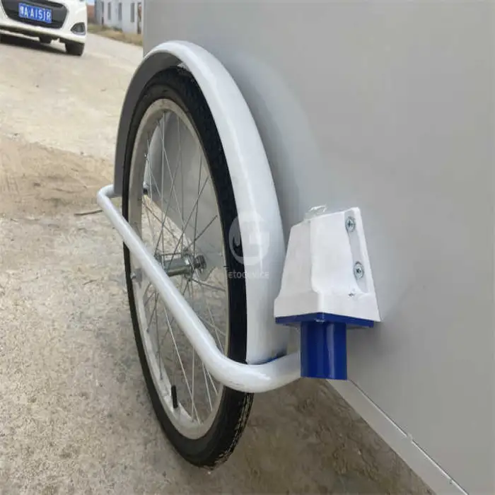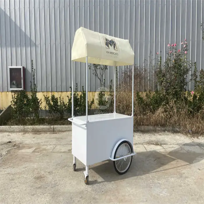 The Stainless Steel Hand Push Food Cart is made from durable stainless steel and aluminum, ensuring longevity and resistance to outdoor elements.
