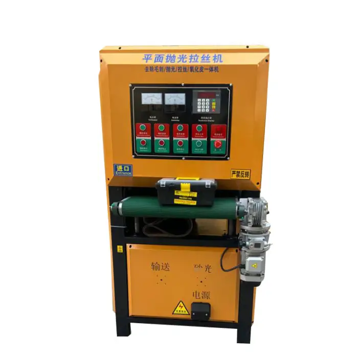 The machine is suitable for polishing and finishing various materials, including copper, iron, zinc, aluminum, glass, wood, marble, and stone.