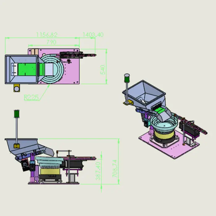 The feeder streamlines the production process by automating parts feeding and ensuring a smooth workflow.