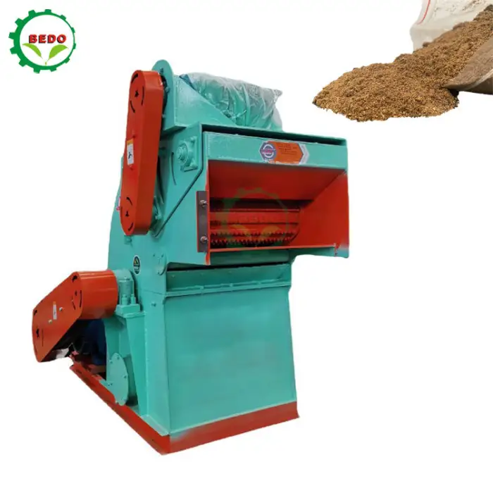 This hammer mill is designed to efficiently grind various raw materials including straw, fodder, wood chips, and cereal grains.