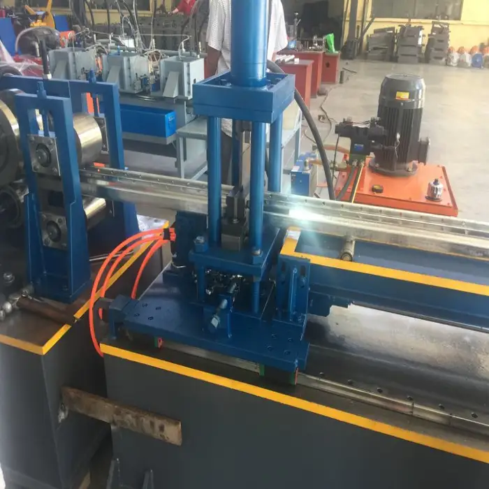 The Supermarket Rack System Making Machine is designed to work with steel, ensuring the production of sturdy and durable racks.
