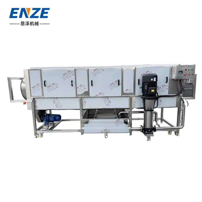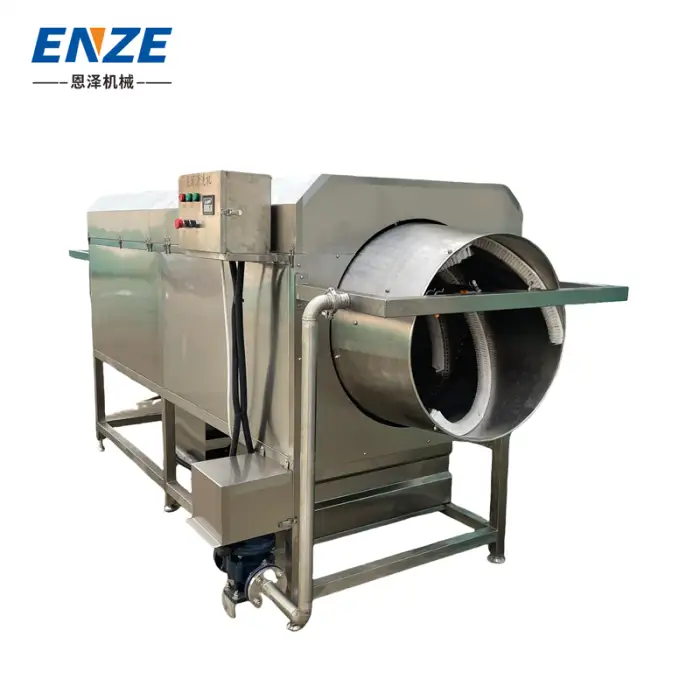 The primary function of this machine is to effectively remove mud stains and sludge from sweet potatoes and other vegetables, ensuring high hygiene standards in vegetable processing plants.