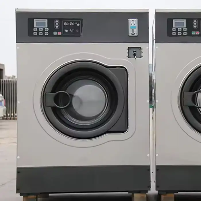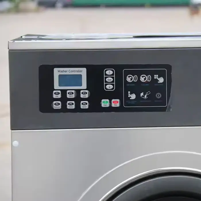 This washing machine is designed to efficiently wash a variety of textiles, making it suitable for laundromats, hotels, and textile cleaning companies.