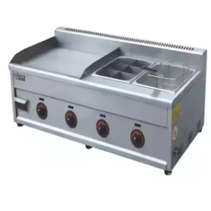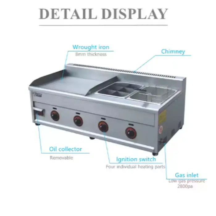 The griddle fryer comes in a sleek silver color.