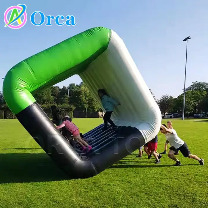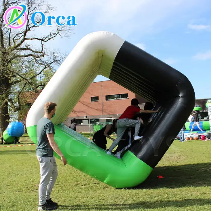 The inflatable cube is designed for multiple participants, making it ideal for team-building activities and group events.
