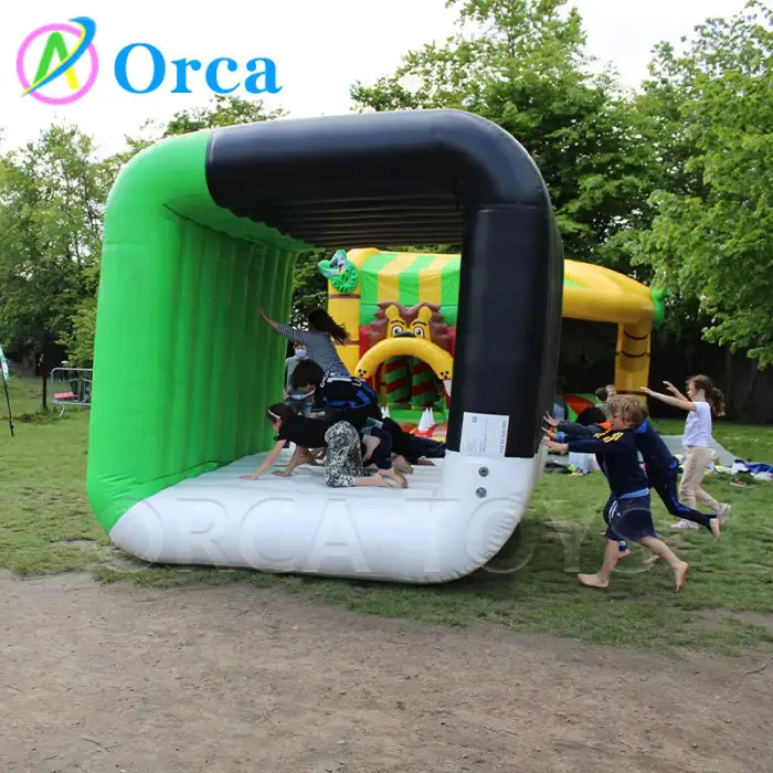 The inflatable cube is made from durable 0.6mm or 0.9mm PVC tarpaulin, ensuring it can withstand outdoor activities.