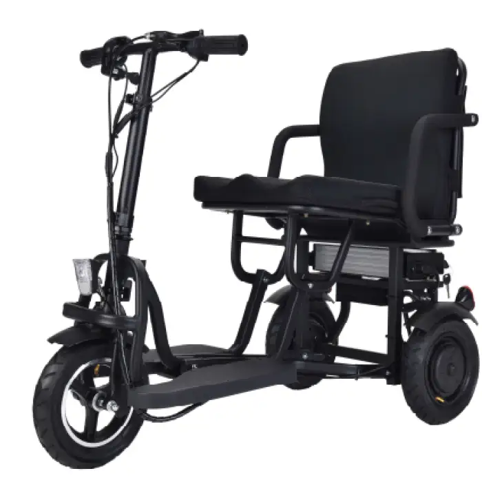 The Three-wheel Scooter is equipped with a mechanical brake system.