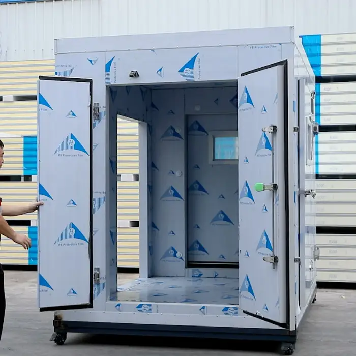 The unit features durable polyurethane insulation panels, which provide effective temperature control.