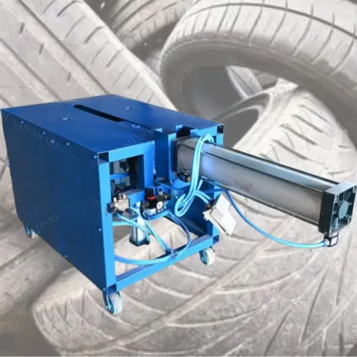 The machine is specifically designed to process rubber from used tires, converting them into reusable materials.