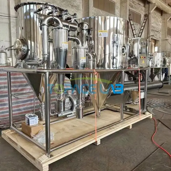 The Topacelab Spray Dryer is designed for producing high-quality milk powder and instant coffee by using a spray drying process to create fine, dry powders from liquid products.