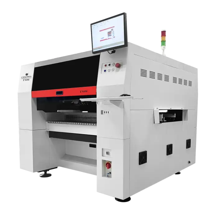 The TS06's six mounting heads and high-speed operation capability of 30,000 components per hour make it suitable for high-speed production.