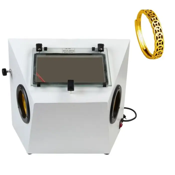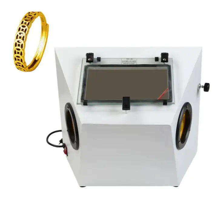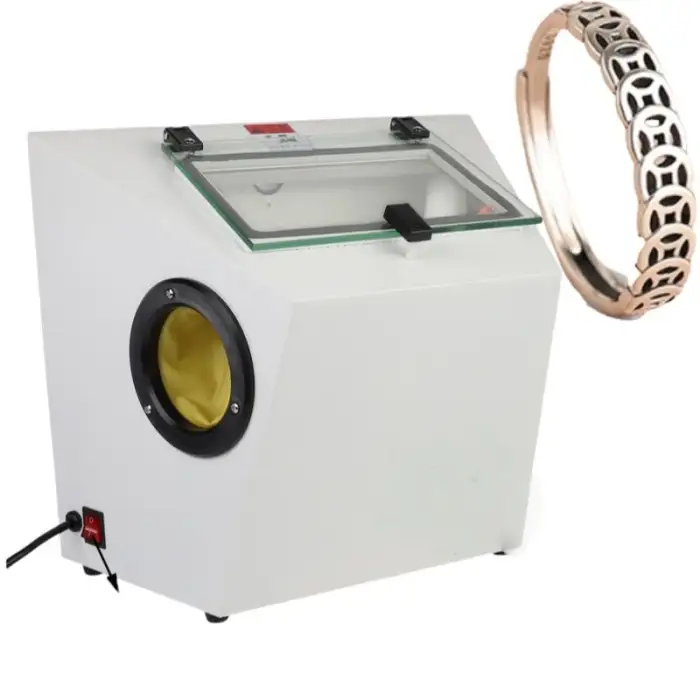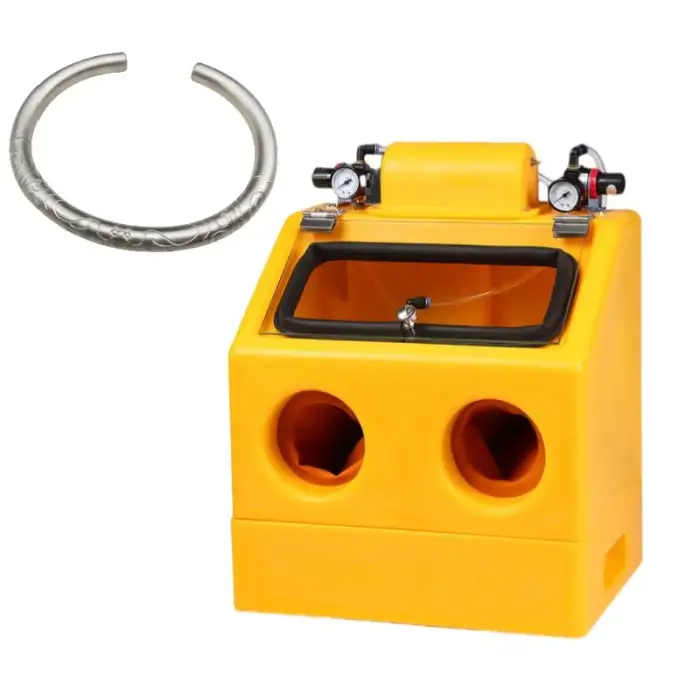 This sandblaster is suitable for cleaning and finishing jewelry pieces, preparing dental equipment, restoring old or worn jewelry, and enhancing surface textures on various metal objects.
