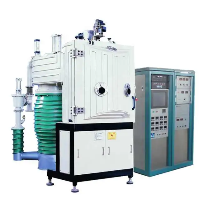 The machine can apply chrome, aluminum, and titanium coatings, with options for various decorative color finishes.