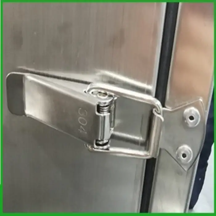 The dust collector is constructed from durable food grade stainless steel, ensuring long-lasting use and safety in various industrial applications.