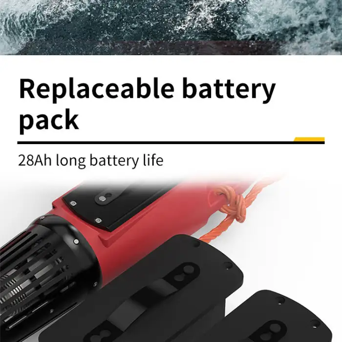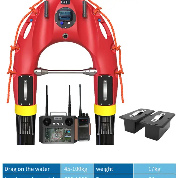 The scooter can reach a water speed of 9M/S with no load and 5M/S with a 150kg load.