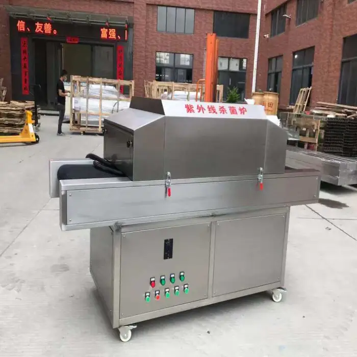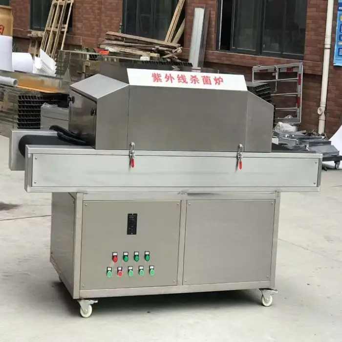 The equipment uses UV light to eliminate harmful microorganisms on food surfaces. The UV light penetrates the cell walls of bacteria and viruses, disrupting their DNA and effectively sterilizing the surfaces.