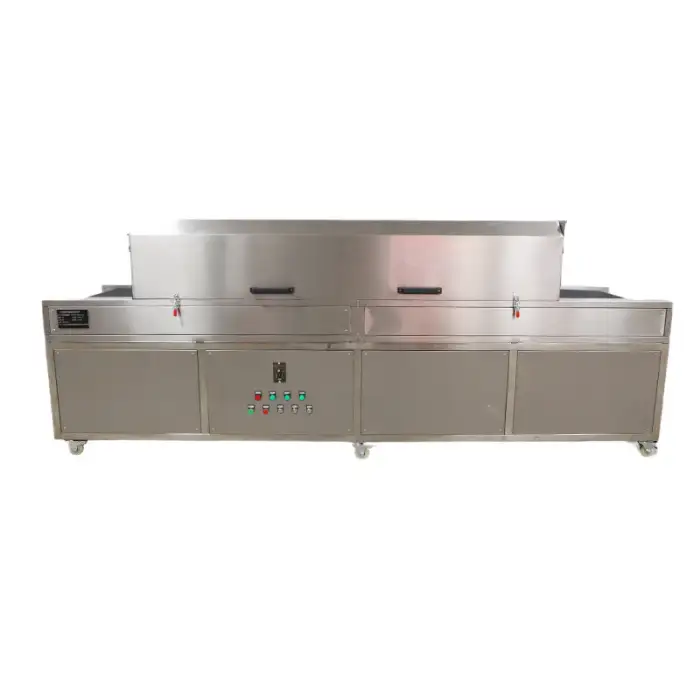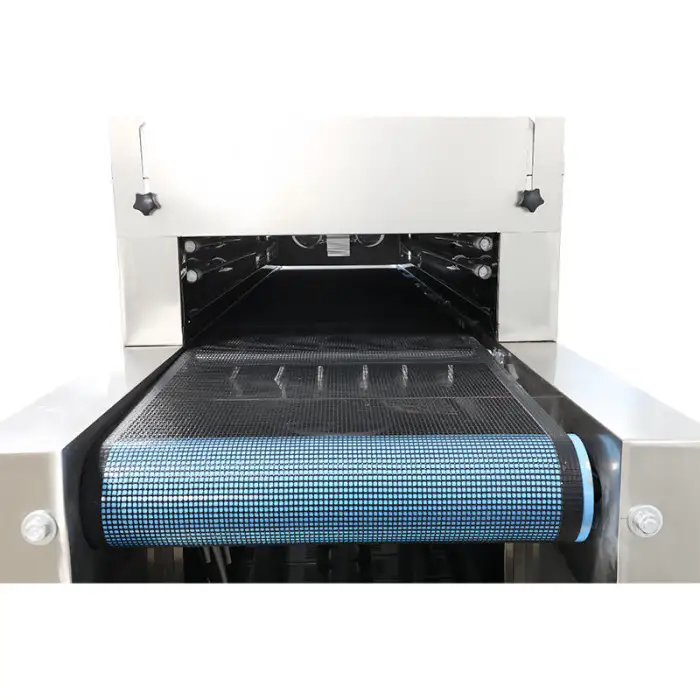 The conveyor belt design allows for efficient processing of multiple items, enabling quick and consistent sterilization.