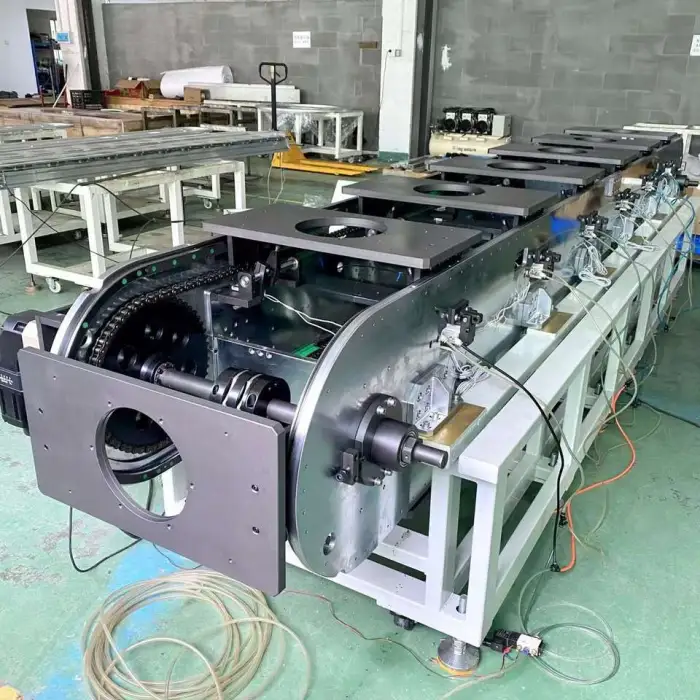 The ellipsoid shape and robust construction of the conveyor line efficiently guide products through various stages of production, improving overall workflow.