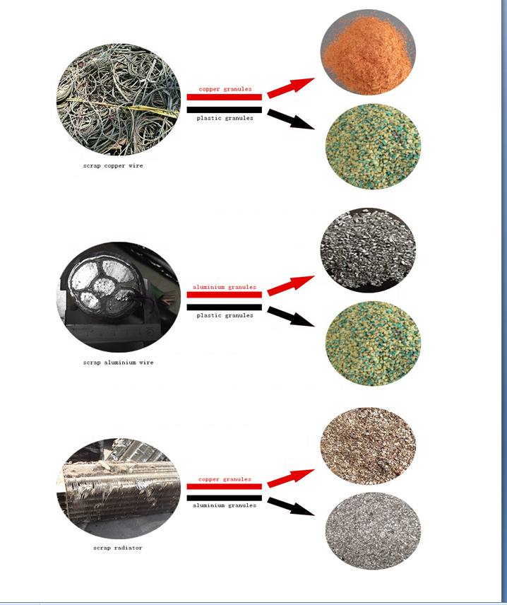 The Waste Cable Separator Scrap Copper Wire Granulator Separator Recycling Machine is an efficient solution for recycling copper wire. This machine is designed to separate copper from plastic, ensuring high purity and maximum recovery of valuable materials. It is ideal for businesses looking to reduce waste and promote sustainability.