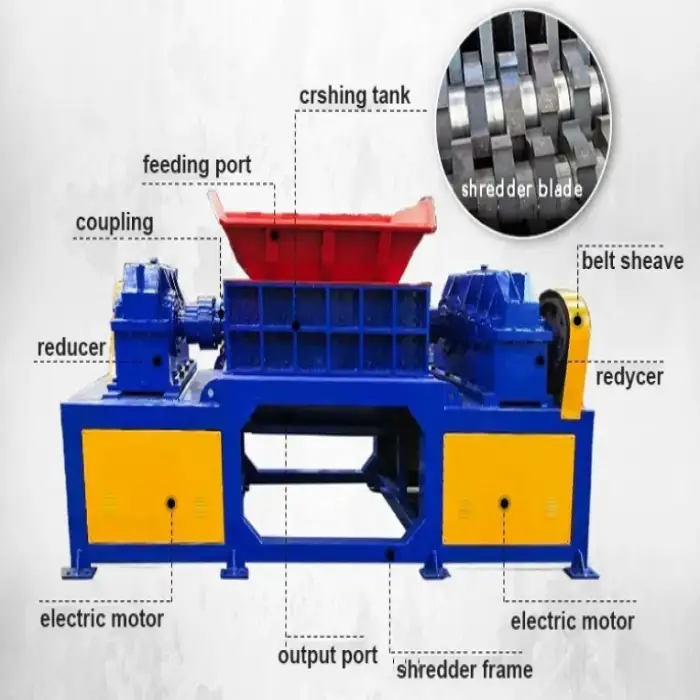 The double shaft design enhances the shredding efficiency and allows for better handling of various plastic materials.