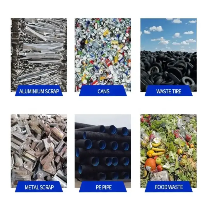 The Waste Shredder can efficiently process various types of plastics including PVC, PET, ABS, PP/PE, PE, PP, PC, PMMA, PA, and PS.