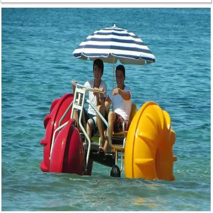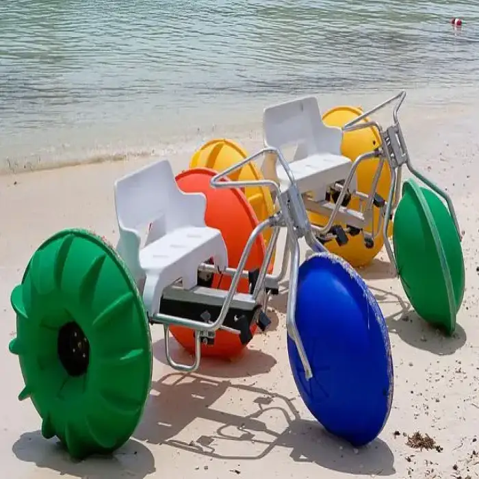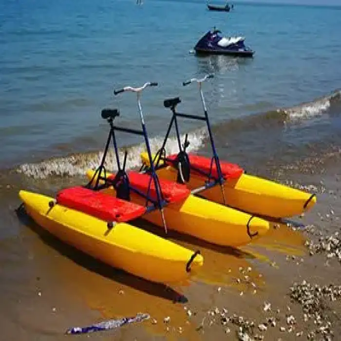 The Water Bike is made from durable plastic and LLDPE, ensuring longevity and stability on the water.