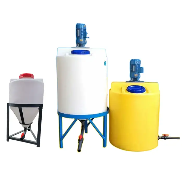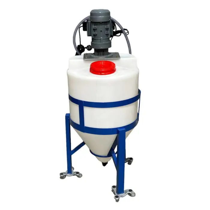 Key features include a high capacity of 1000 liters, a powerful 0.75 kW mixer, durable plastic construction, and customizable colors.