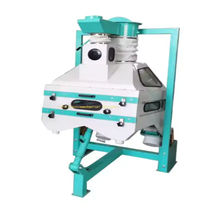 The machine effectively removes stones, sand, and other impurities using a specific gravity separation method and customizable sieve sizes.