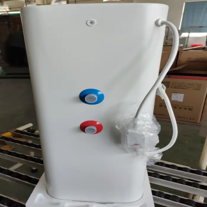 This is a round storage electric water heater, designed for efficient hot water storage.