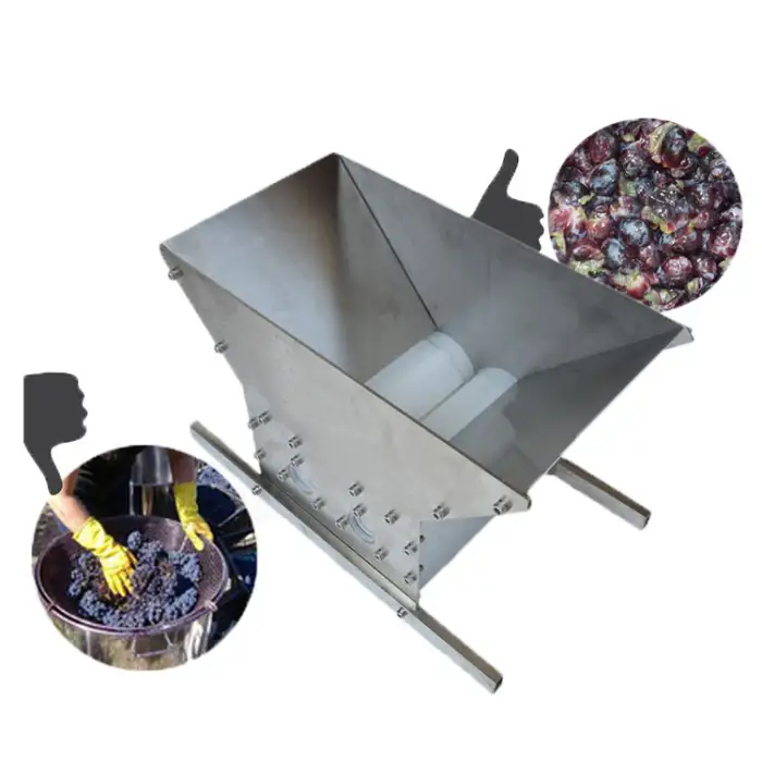 The machine is particularly ideal for red wine processing due to its efficient grape stem removal capabilities.