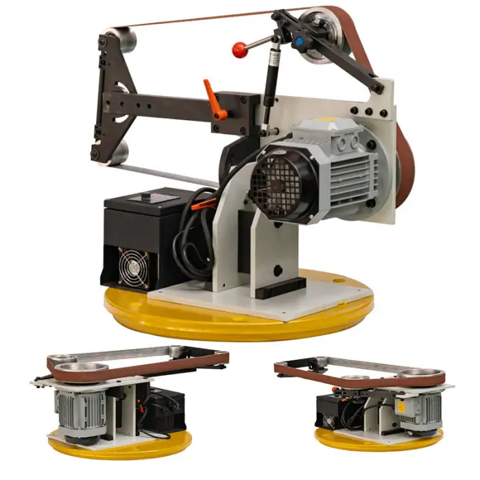 Regular maintenance includes checking for wear on the sanding belts, ensuring components are clean, and lubricating moving parts as needed.
