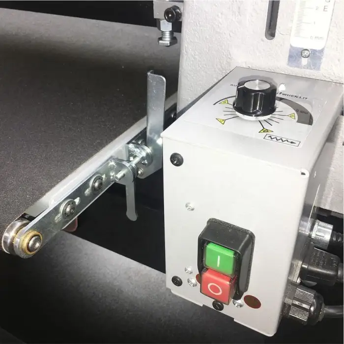The minimum stock thickness that can be sanded with this machine is 0.8mm.