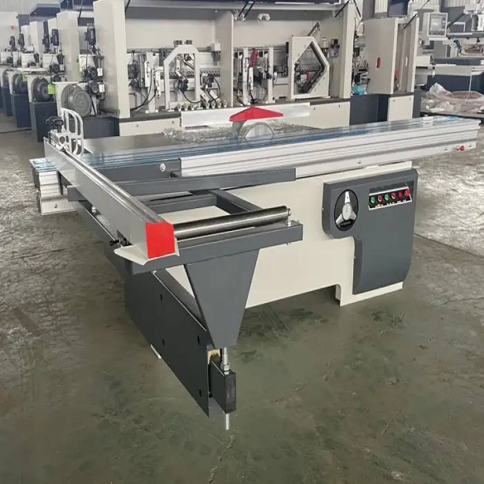 The Woodworking Machinery PVC MDF Cutting off Sliding Table Panel Saw comes with a 1-year warranty.